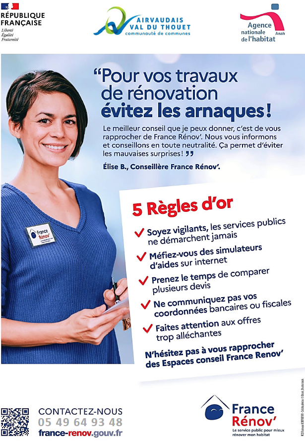 Conseillers France Rénov' : 05 49 66 68 63 ou par mail à info.renovation@cc-avt.fr